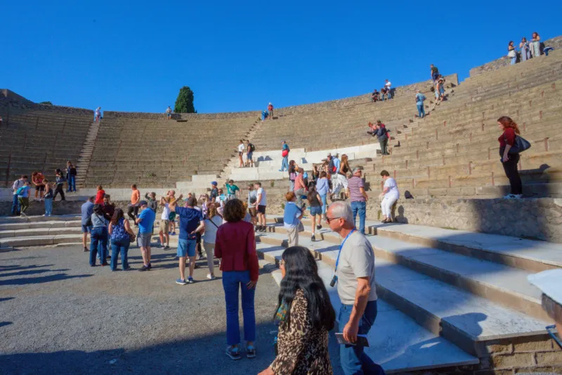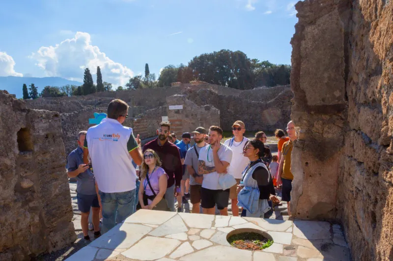 Este tour se realiza con un máximo de 20 participantes. Gracias a las explicaciones del guía, descubrirás la historia y curiosidades de la antigua ciudad de Pompeya, destruida dramáticamente por la erupción del Vesubio en el año 79 d.C.
